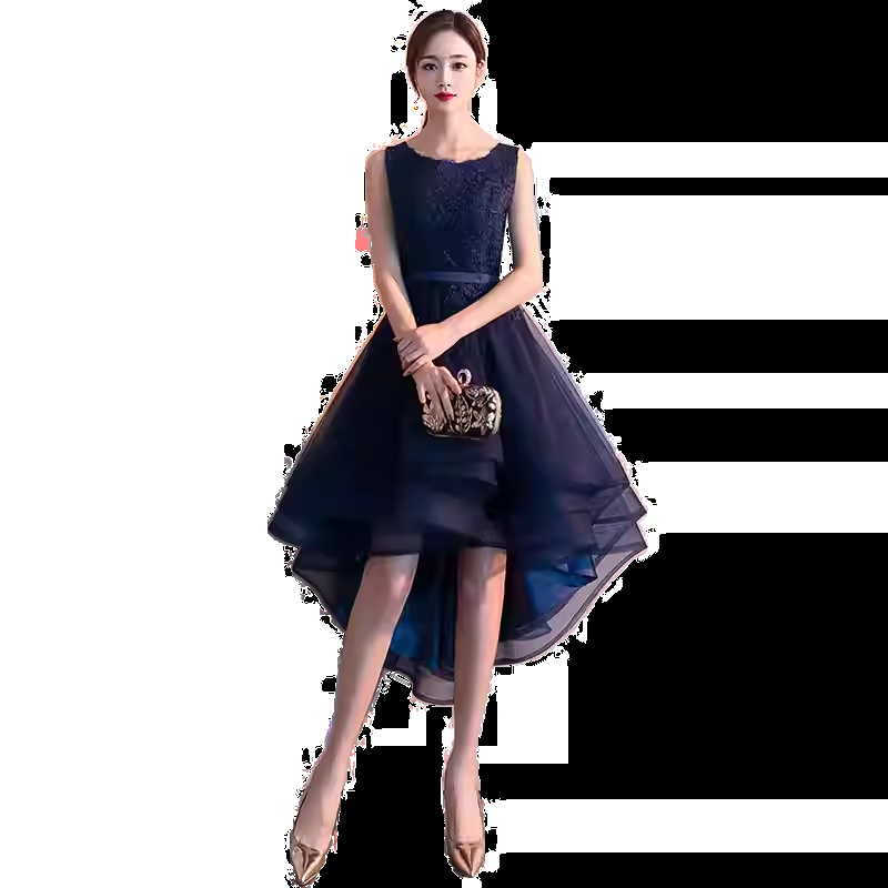 晚礼服2018春夏新款前短后长伴娘服聚会派对小礼服宴会蕾丝连衣裙